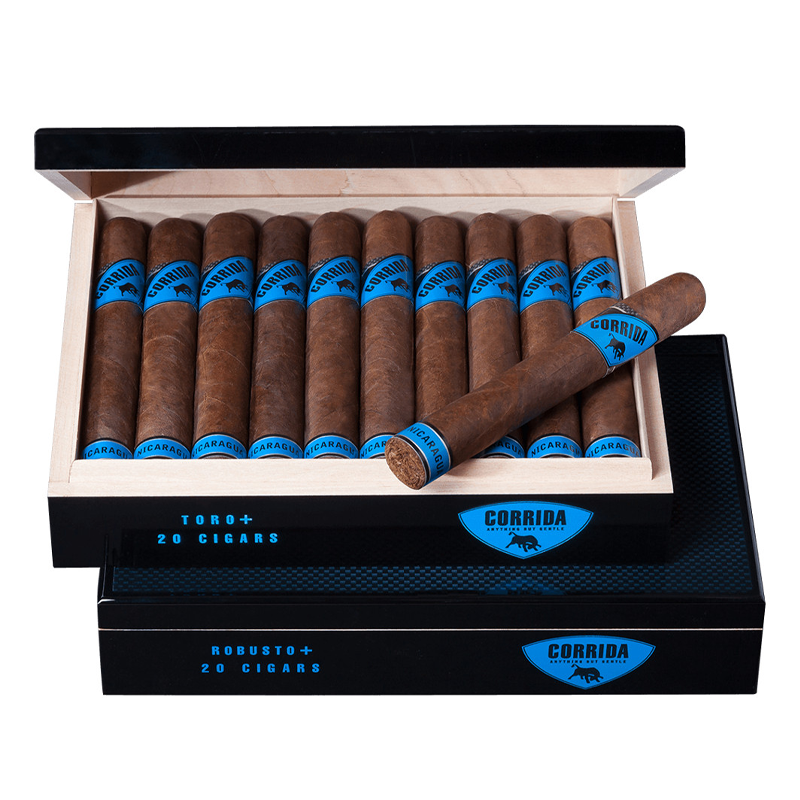 El Corrida Nicaragua Robusto Blue es un puro de profundidad y complejidad, considerado el más fuerte dentro de la gama de la marca Corrida. Sus notas especiadas de madera se combinan con aromas de chocolate oscuro, café expreso y tierra, ofreciendo un placer intenso gracias a los tabacos que han sido añejados durante seis meses.